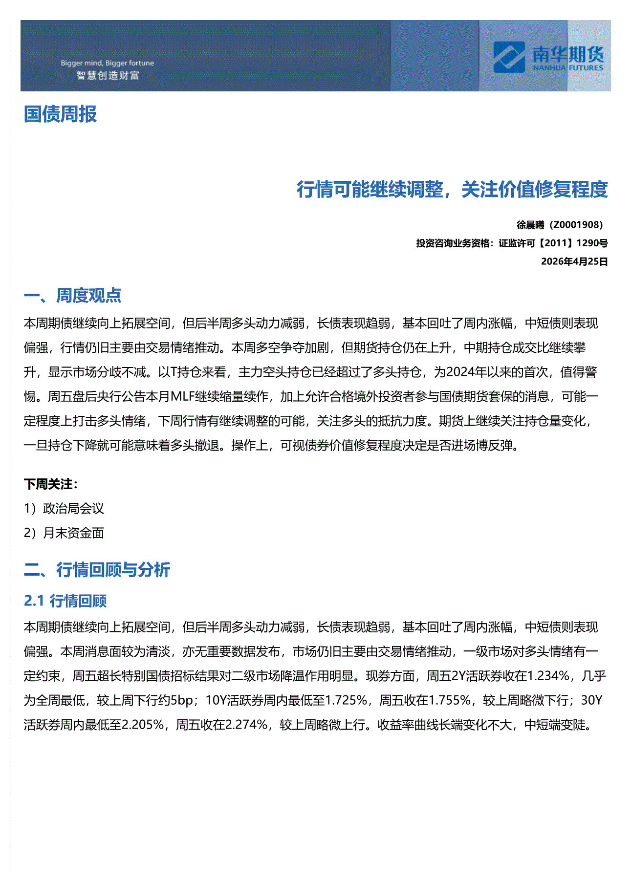 南华期货-国债周报:多空博弈加剧,谨慎看待行情空间-260418