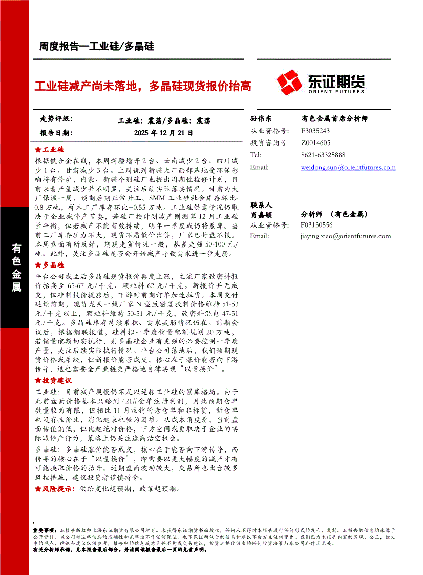 东证期货-工业硅/多晶硅周度报告:工业硅减产尚未落地,多晶硅现货报价抬高-251221