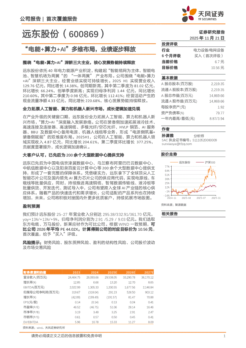 远东股份:天风证券-远东股份-600869-“电能+算力+AI”多维布局,业绩逐步释放-251121