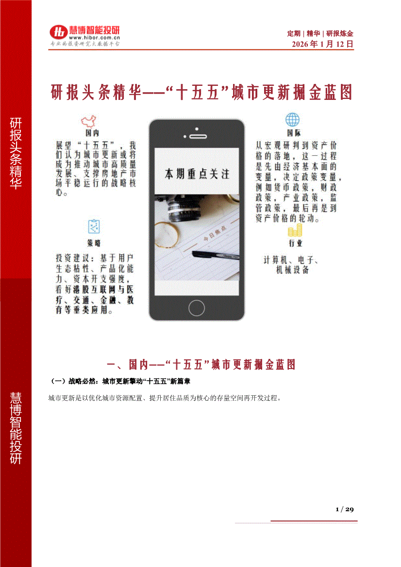 慧博智能投研-慧博研报炼金之研报头条精华:“十五五”城市更新掘金蓝图-260112