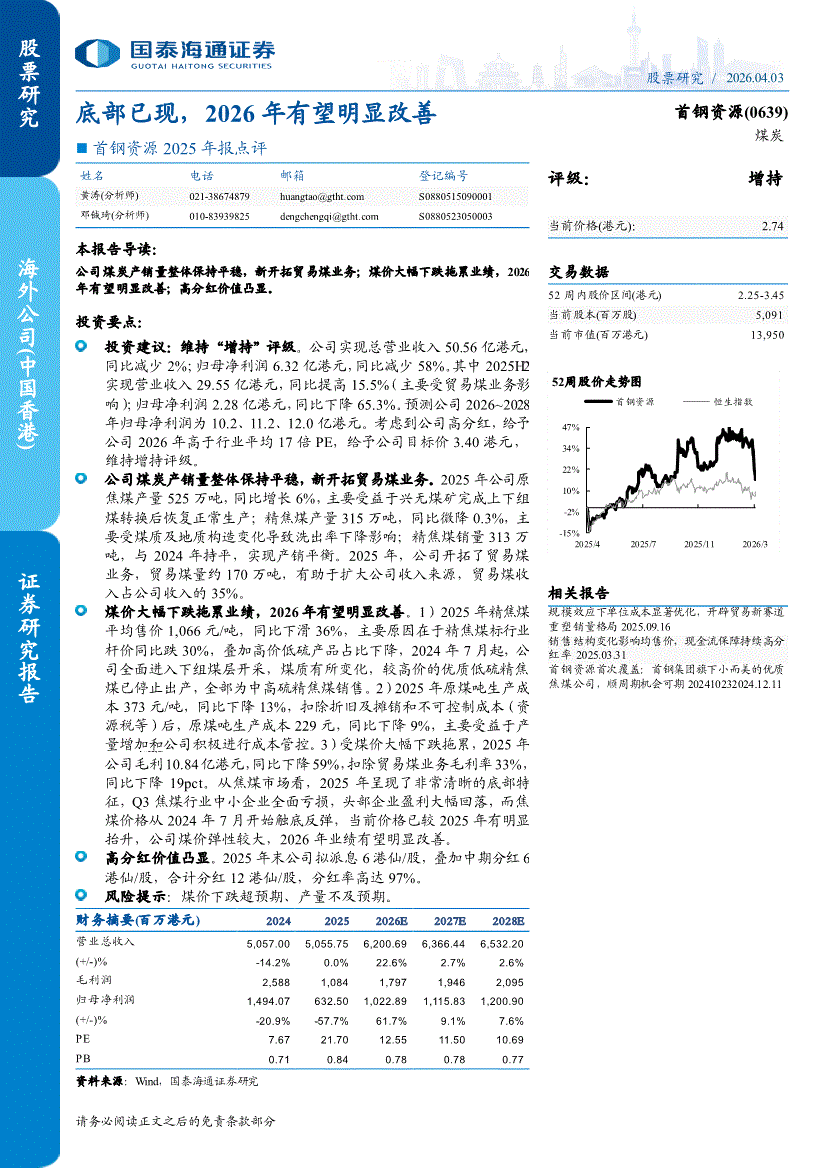 首钢资源:国泰海通证券-首钢资源-0639.HK-2025年报点评:底部已现,2026年有望明显改善-260403