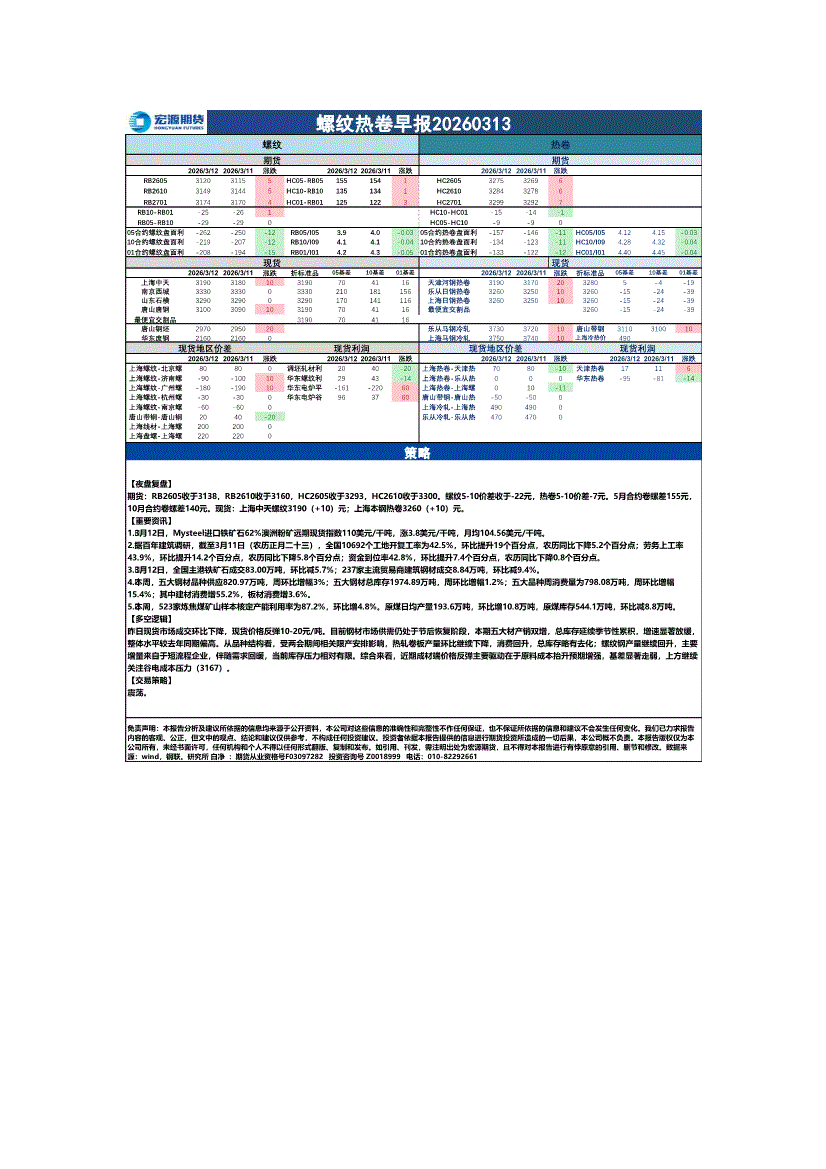 宏源期货-螺纹热卷早报-260313