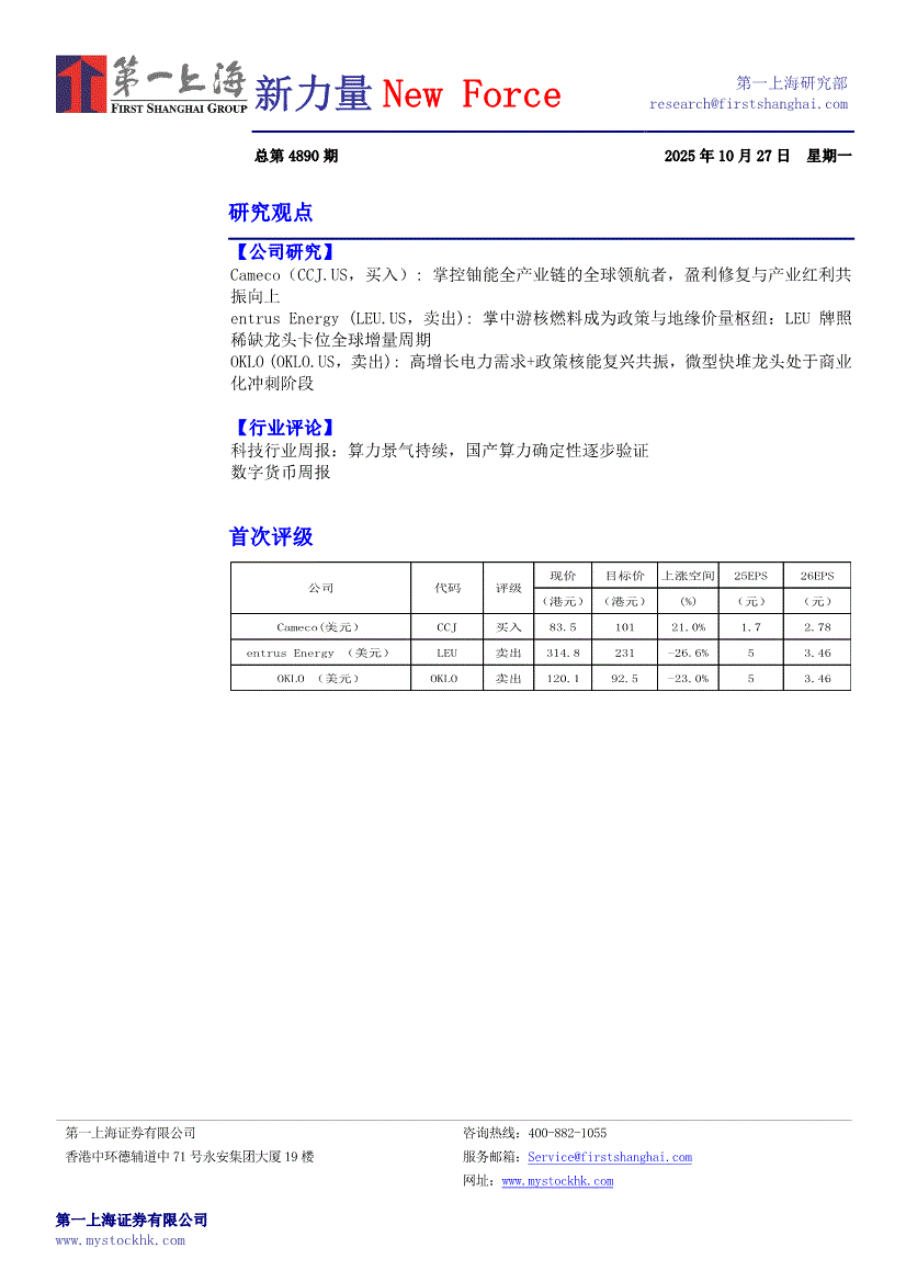 新华汇富-汇富快讯:香港及中国市场日报-251027