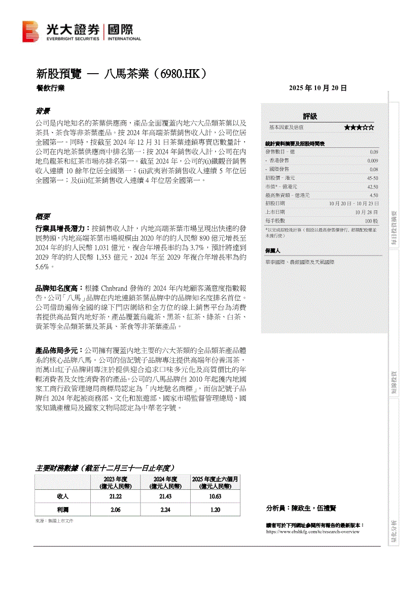 光大证券(国际)-新股预览:八马茶业(6980.HK)-251020