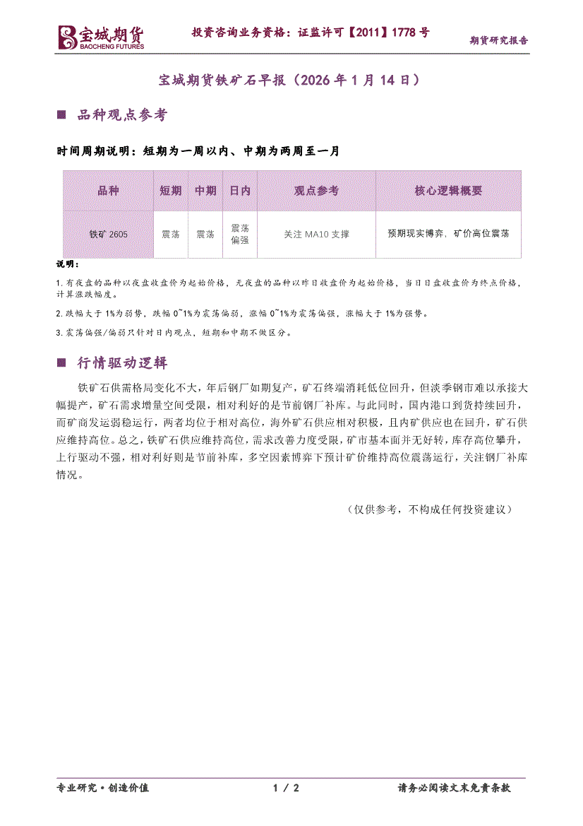 宝城期货-钢材&铁矿石日报:商品情绪偏暖,钢矿震荡走高-260112