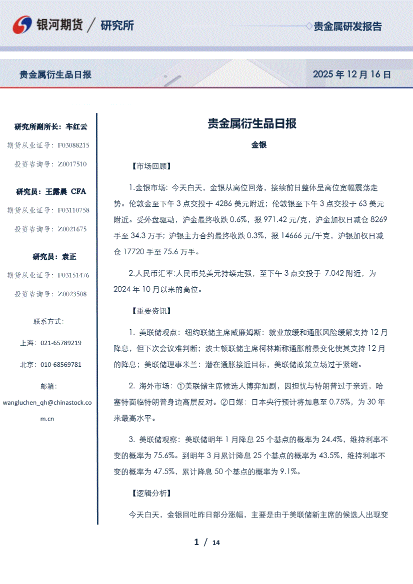 银河期货-宏观不确定性提升,金银波动放大-251215