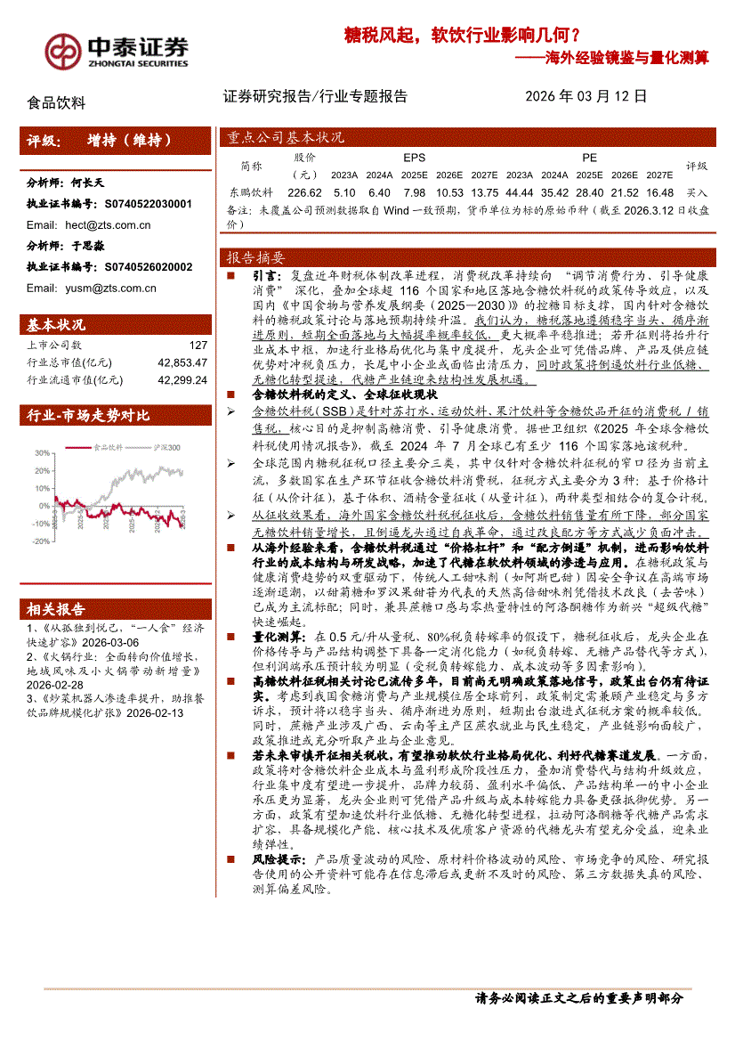 食品饮料行业:中泰证券-食品饮料行业海外经验镜鉴与量化测算:糖税风起,软饮行业影响几何?-260312
