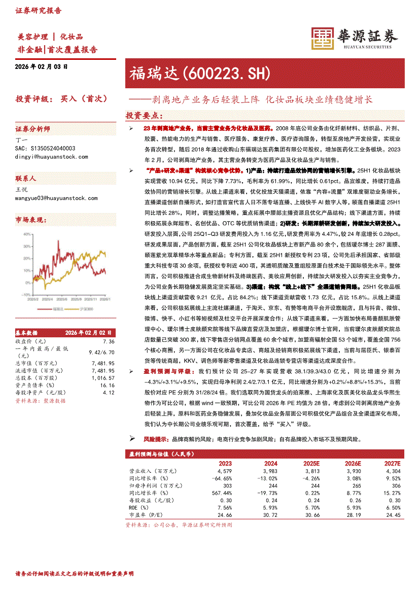 福瑞达:华源证券-福瑞达-600223-剥离地产业务后轻装上阵,化妆品板块业绩稳健增长-260203