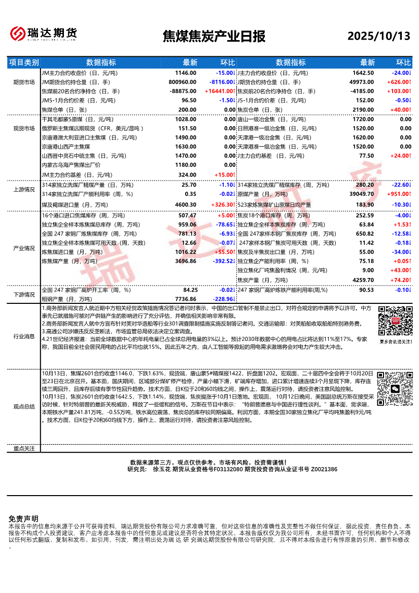 瑞达期货-焦炭市场周报:钢材累库需求偏弱,焦炭一轮提涨落地-251010