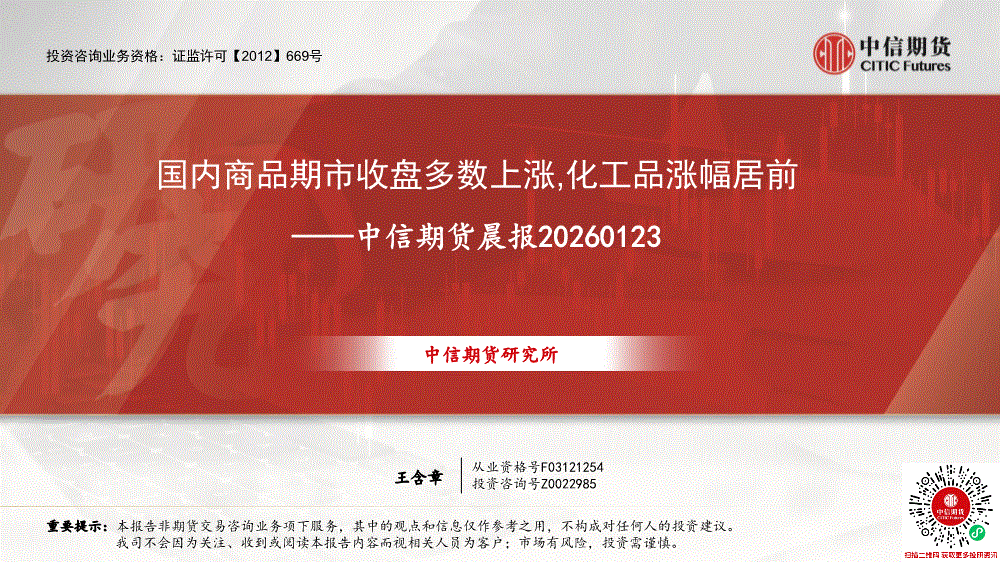 中信期货-晨报:国内商品期市上涨为主,贵金属、有色涨势强劲-260122