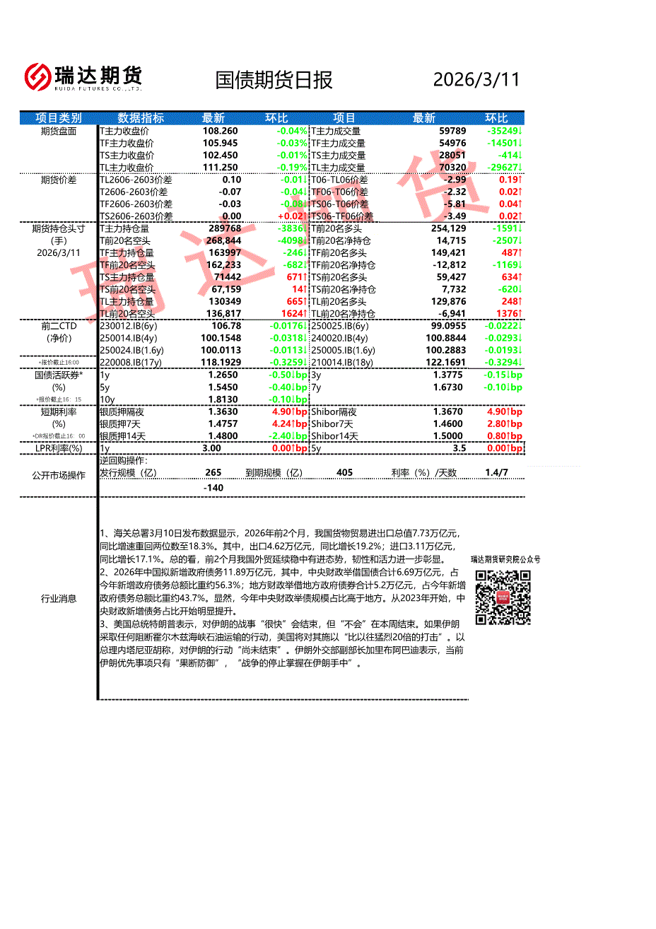 瑞达期货-国债期货日报-260311