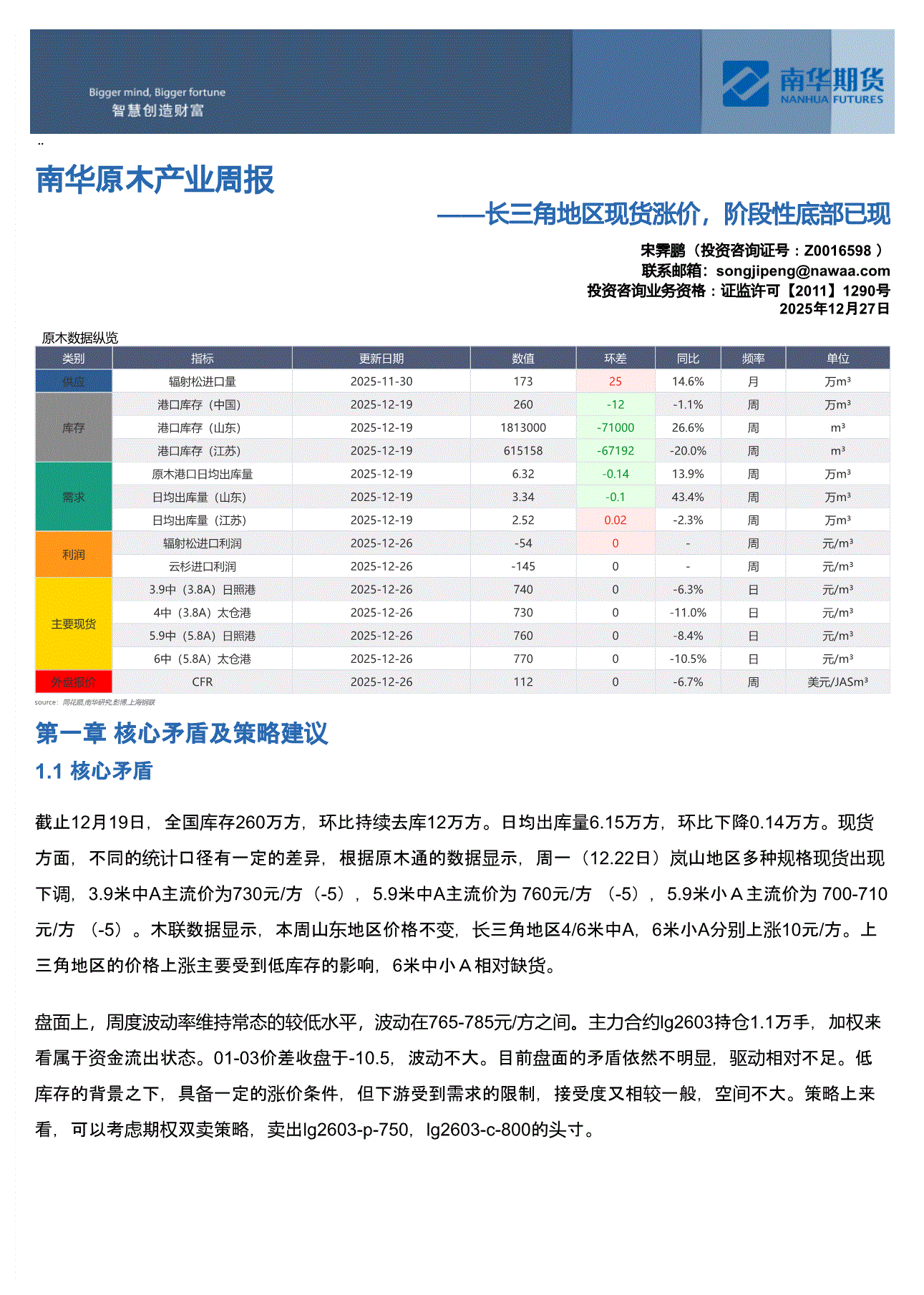 南华期货-原木产业周报:长三角地区现货涨价,阶段性底部已现-251227