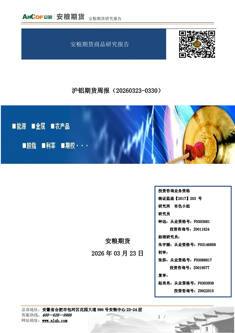 安粮期货-沪铝期货周报:综述,构造头部区域-260323