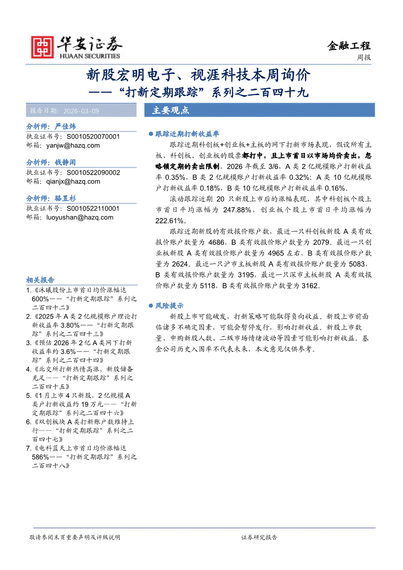 华安证券-“打新定期跟踪”系列之二百四十九:新股宏明电子、视涯科技本周询价-260309