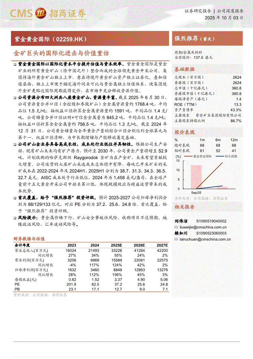 紫金黄金国际:招商证券-紫金黄金国际-2259.HK-金矿巨头的国际化进击与价值重估-251003