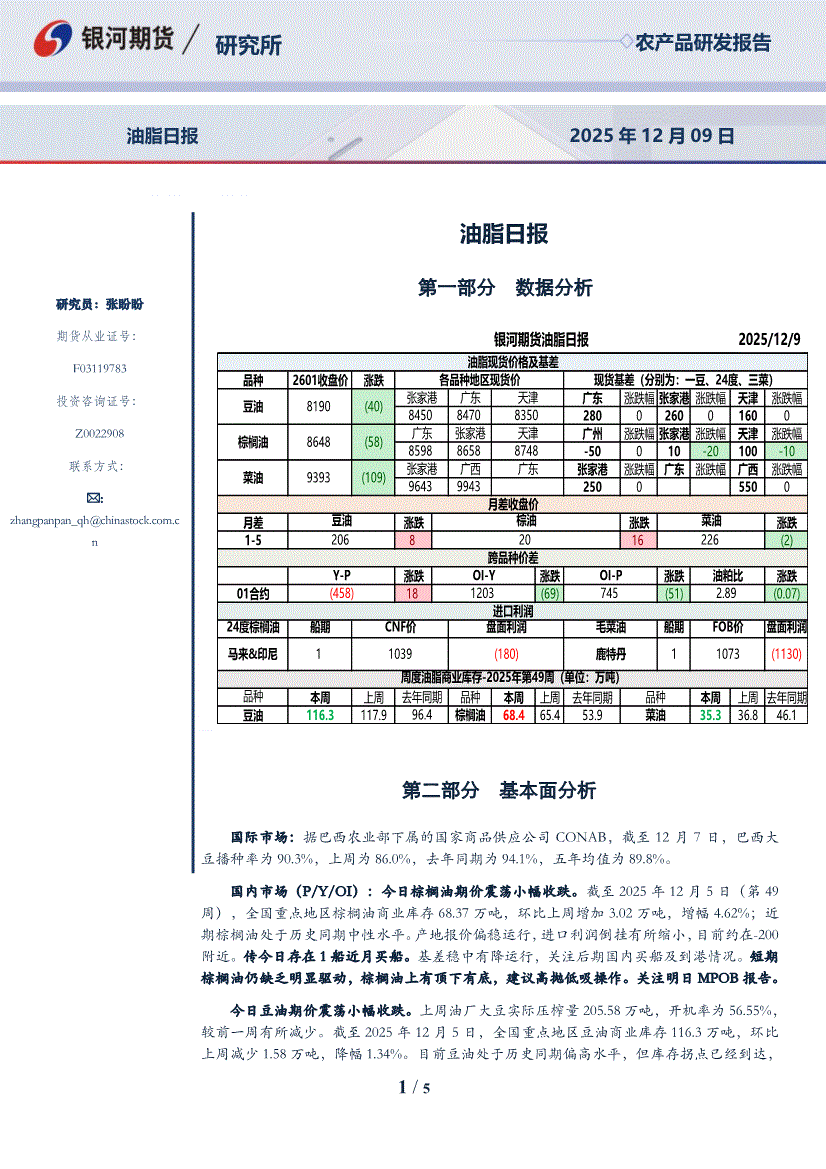 银河期货-油脂周报:油脂分化明显,整体呈现震荡偏弱-251217