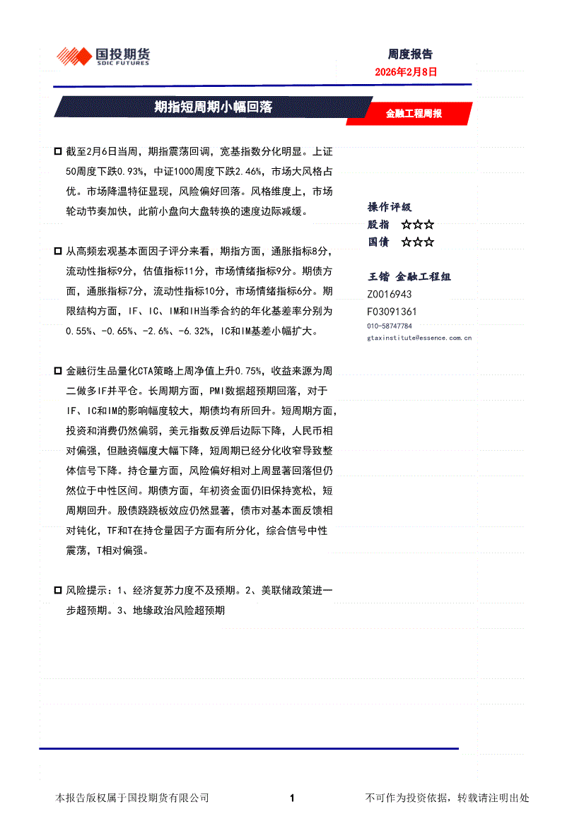 国投期货-金融工程周报:期指短周期小幅回落-260208