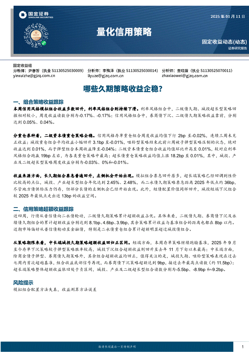 国金证券-量化信用策:哪些久期策略收益企稳?-260111