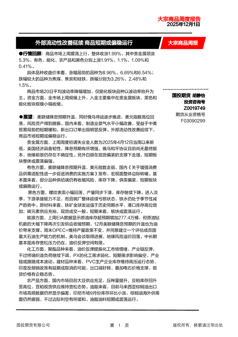 国投期货-大宗商品周报:外部流动性改善延续,商品短期或偏稳运行-251201