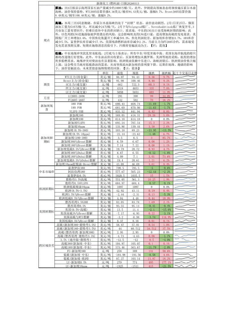 新湖期货-化工(燃料油)日报-260313
