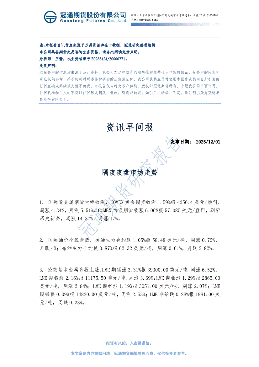 冠通期货-资讯早间报-251201
