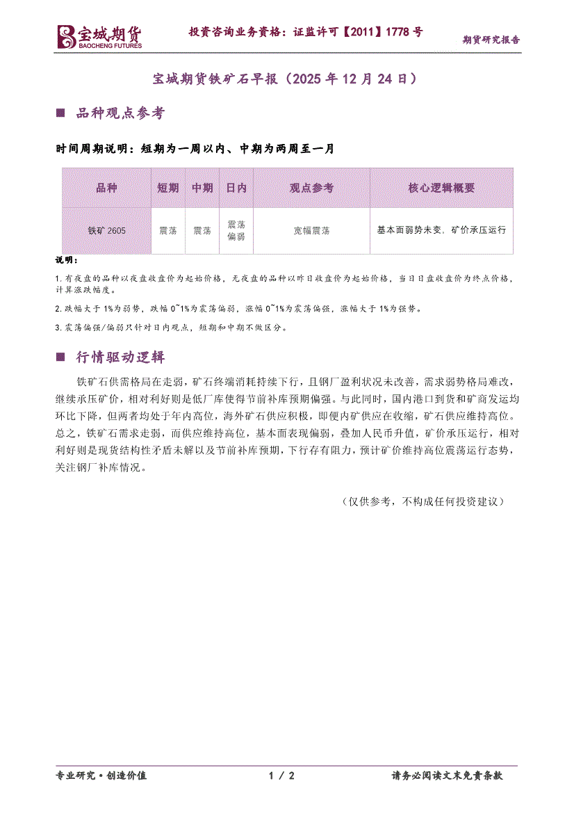 宝城期货-钢材&铁矿石日报:现实格局弱稳,钢矿震荡运行-251222
