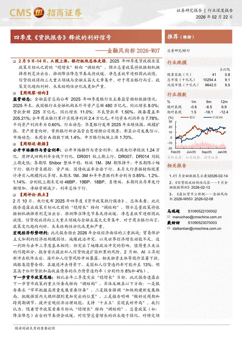 银行业:招商证券-银行业金融风向标2026~W07:四季度《货执报告》释放的利好信号-260222
