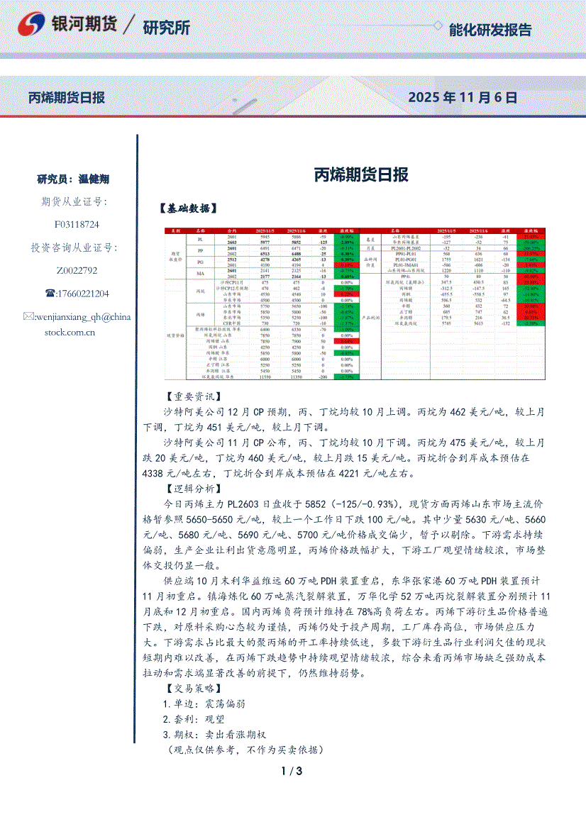 银河期货-丙烯期货日报-251117