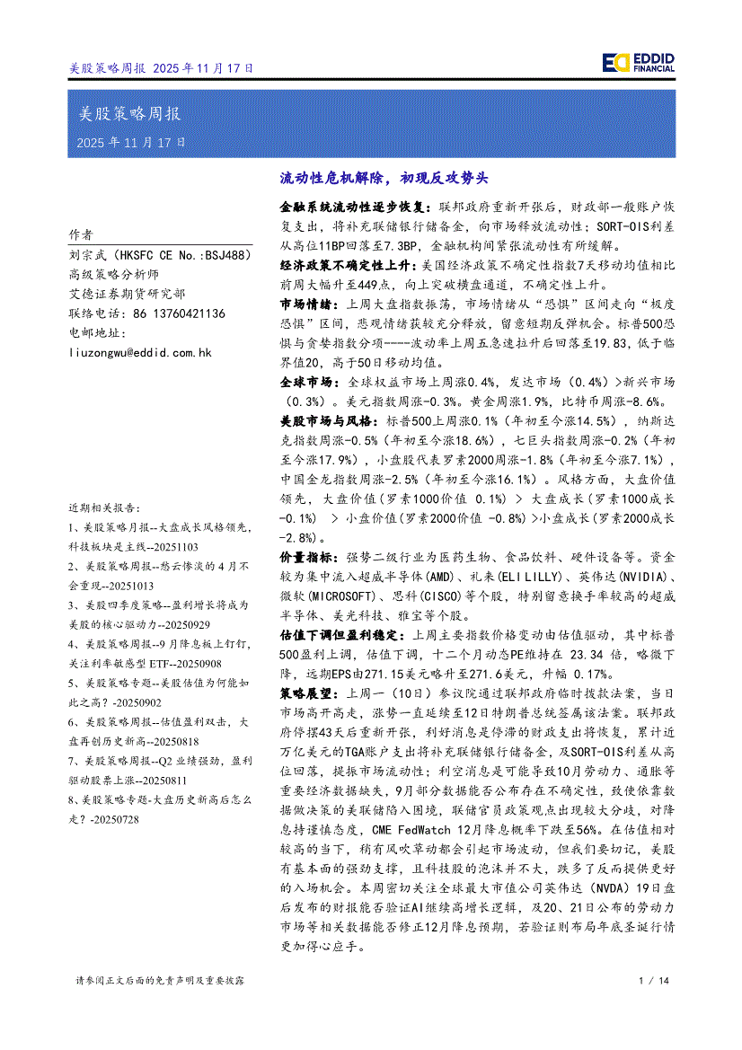 艾德证券期货-美股策略周报:流动性危机解除,初现反攻势头-251117