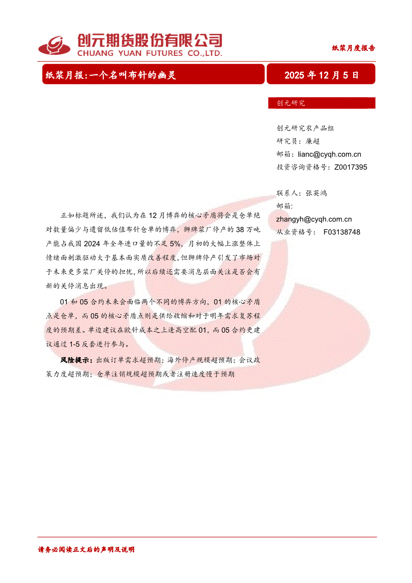 创元期货-纸浆月报:一个名叫布针的幽灵-251205