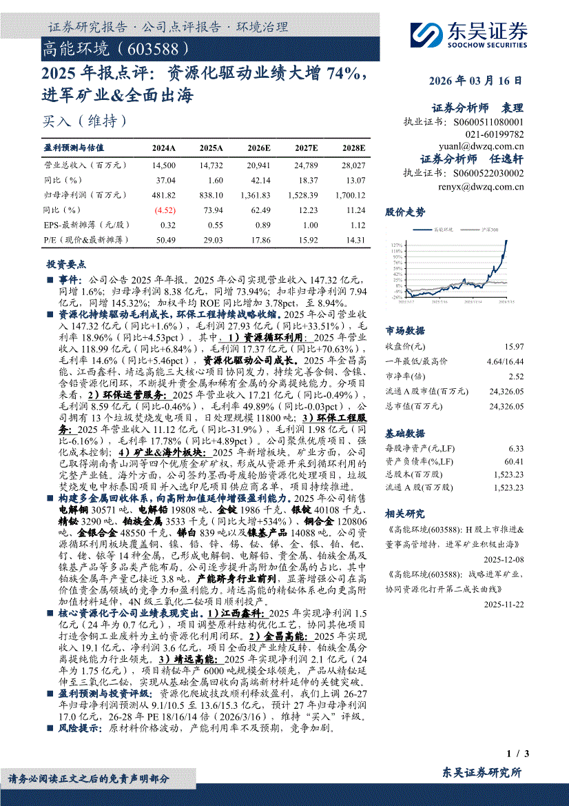 高能环境:东吴证券-高能环境-603588-2025年报点评:资源化驱动业绩大增74%,进军矿业&全面出海-260316