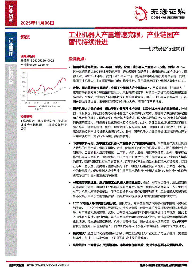 机械设备行业:东海证券-机械设备行业简评:工业机器人产量增速亮眼,产业链国产替代持续推进-251106