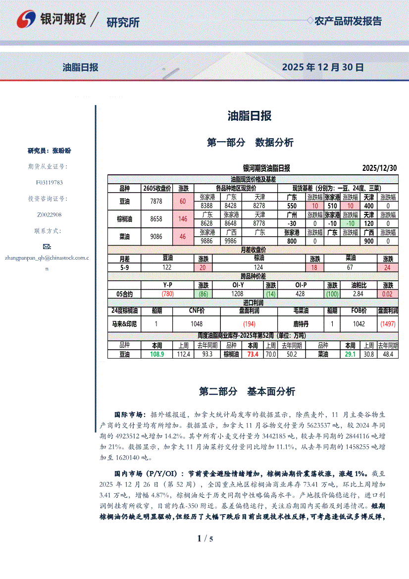银河期货-油脂日报-251230