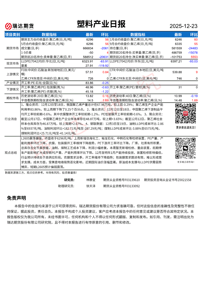 瑞达期货-塑料产业日报-251223
