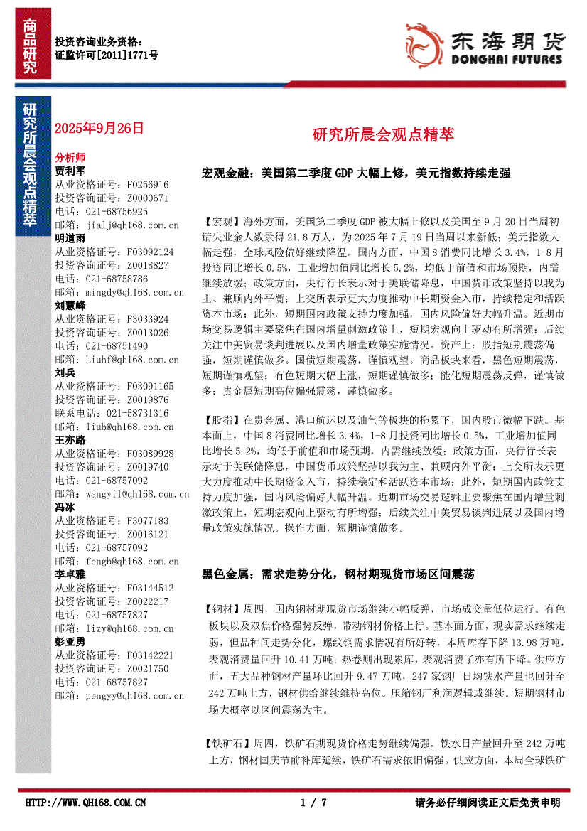 东海期货-研究所晨会观点精萃-250926