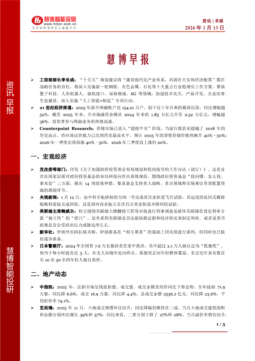 慧博智能投研-机构周策略:机构观点及行业配置-260111