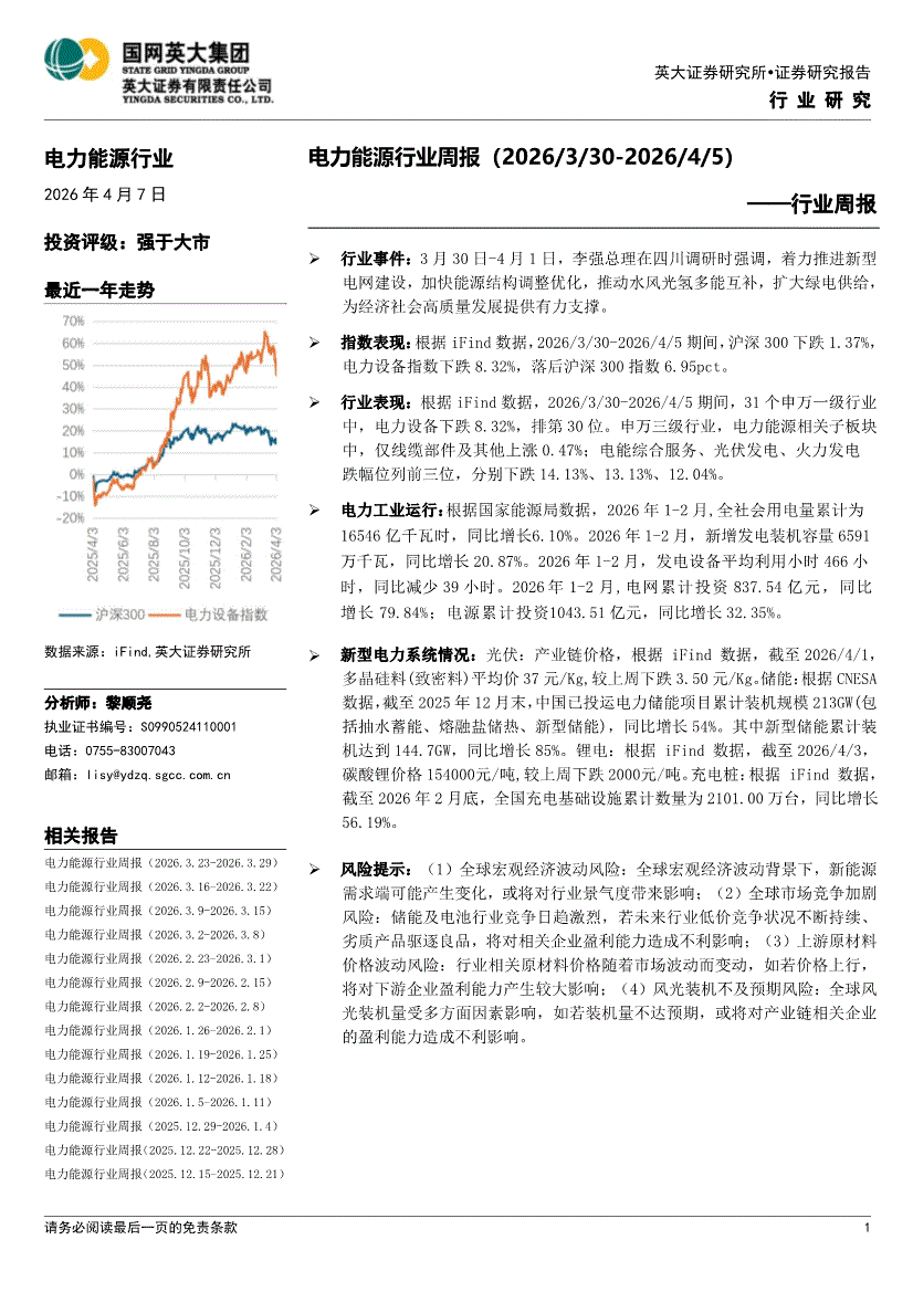 电力能源行业:英大证券-电力能源行业周报-260407