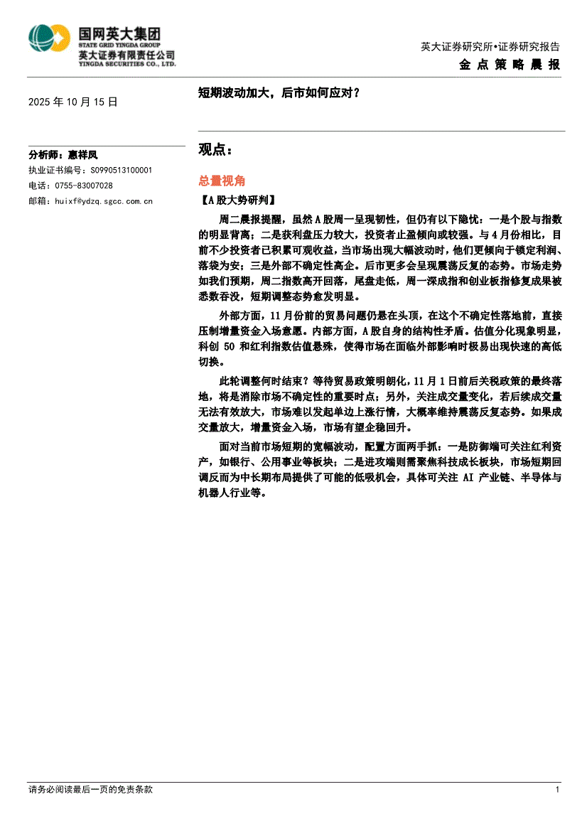 英大证券-金点策略晨报-251015