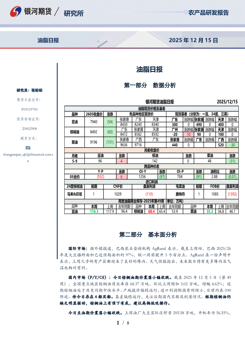 银河期货-油脂周报:油脂分化明显,整体呈现震荡偏弱-251217