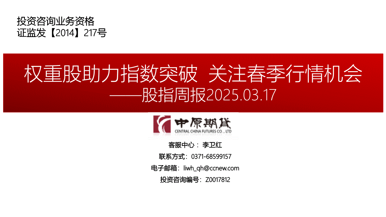 中原期货-股指周报:权重股助力指数突破,关注春季行情机会-250317