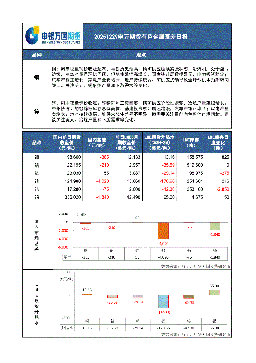 申银万国期货-有色金属基差日报-251229