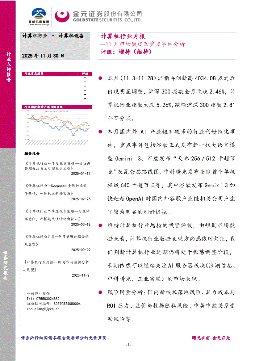 计算机行业:金元证券-计算机行业月报:11月市场数据及重点事件分析-251130