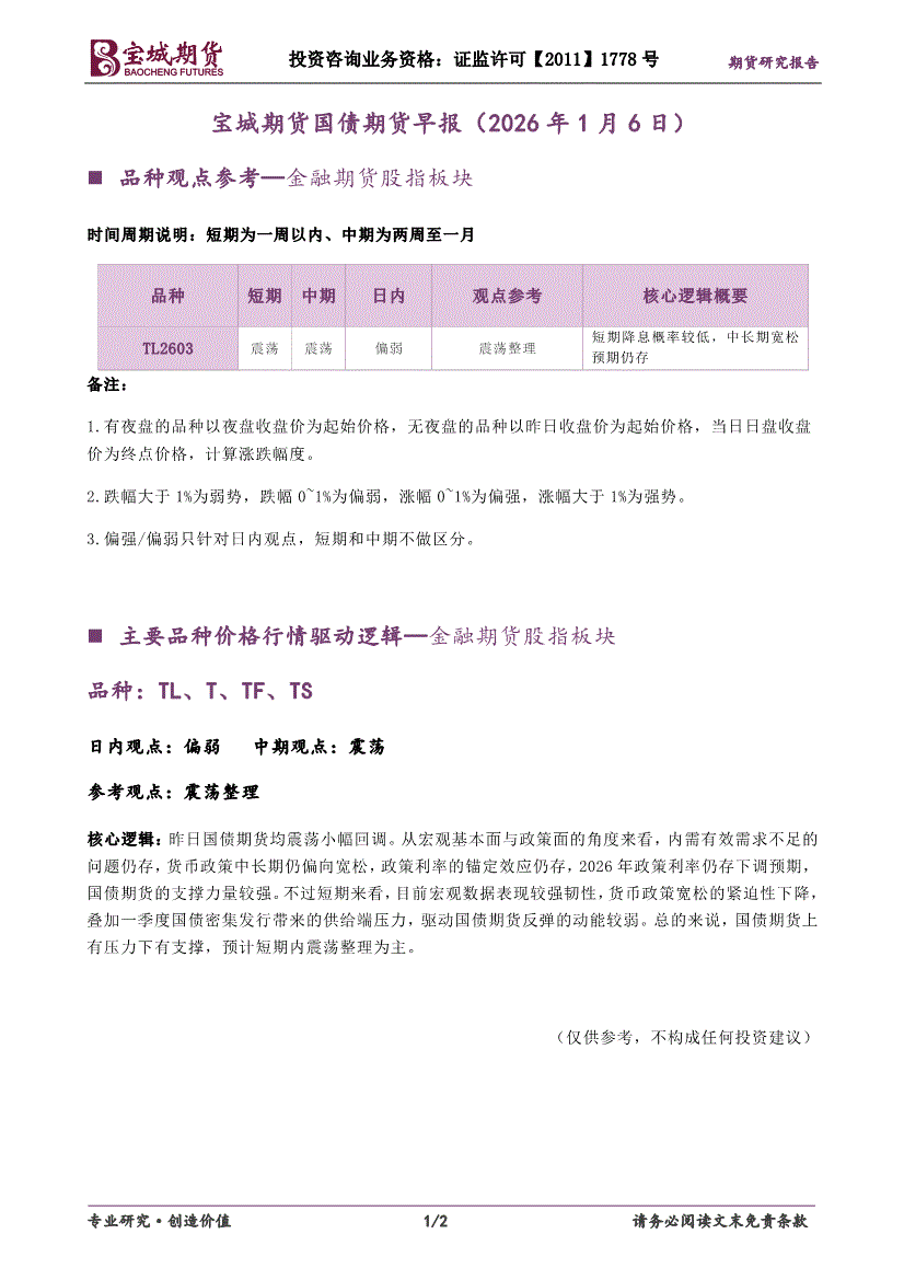 宝城期货-国债期货早报-260106