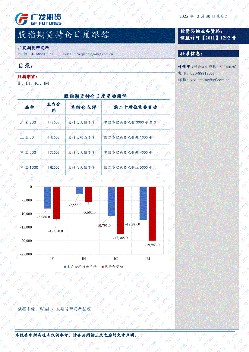 广发期货-股指期货持仓日度跟踪-251226