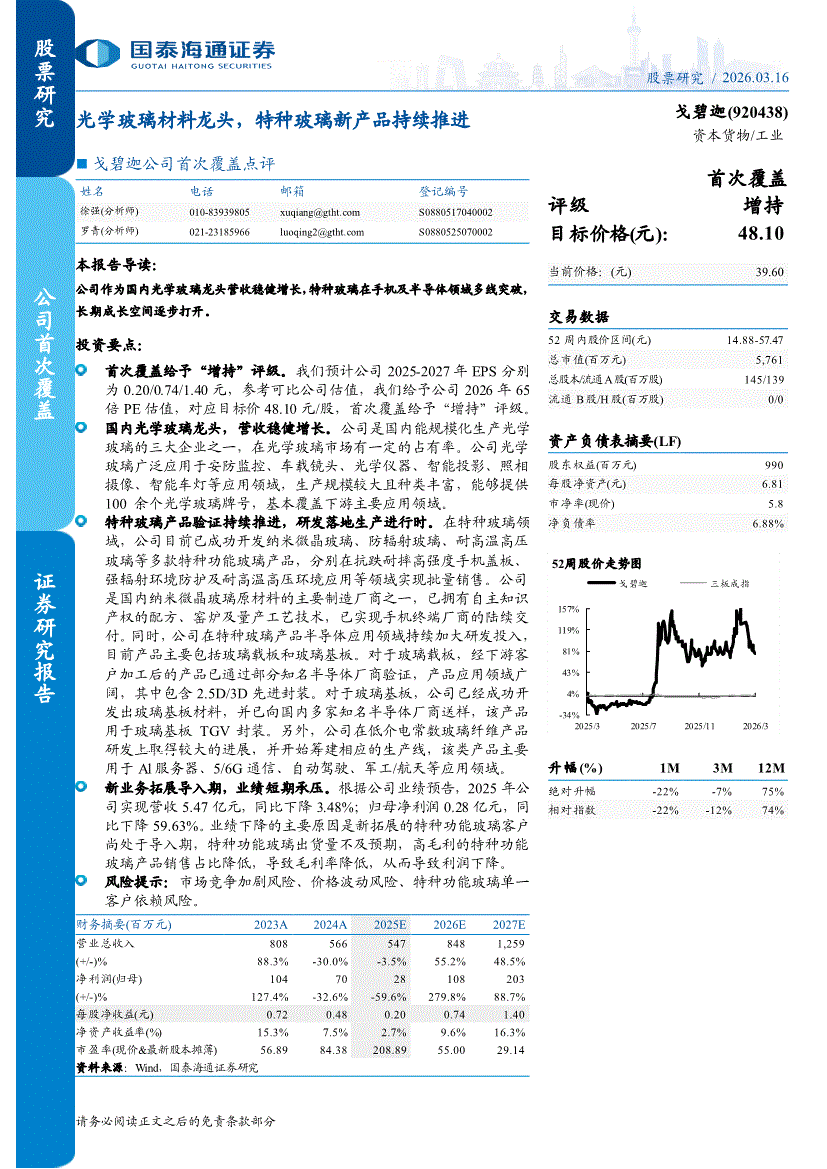 戈碧迦:国泰海通证券-戈碧迦-920438-公司首次覆盖点评:光学玻璃材料龙头,特种玻璃新产品持续推进-260316