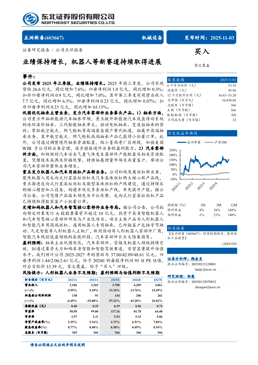 五洲新春:东北证券-五洲新春-603667-业绩保持增长,机器人等新赛道持续取得进展-251103