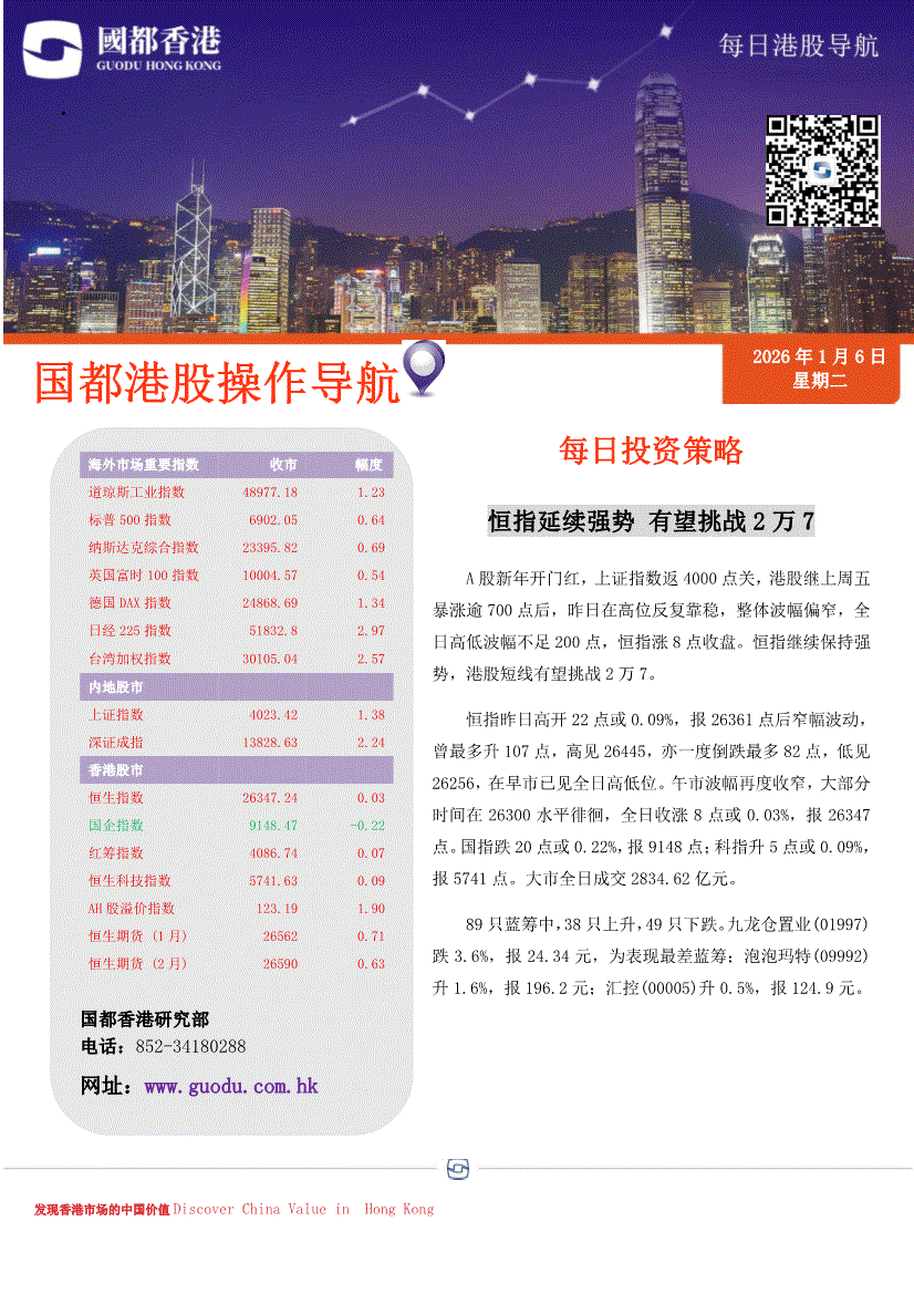 国都证券(香港)-每日港股导航-260106
