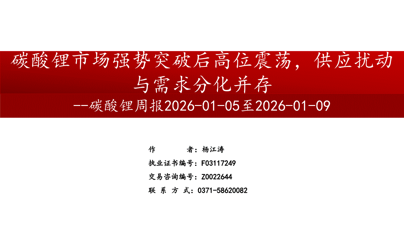 中原期货-碳酸锂周报:碳酸锂市场强势突破后高位震荡,供应扰动与需求分化并存-260202