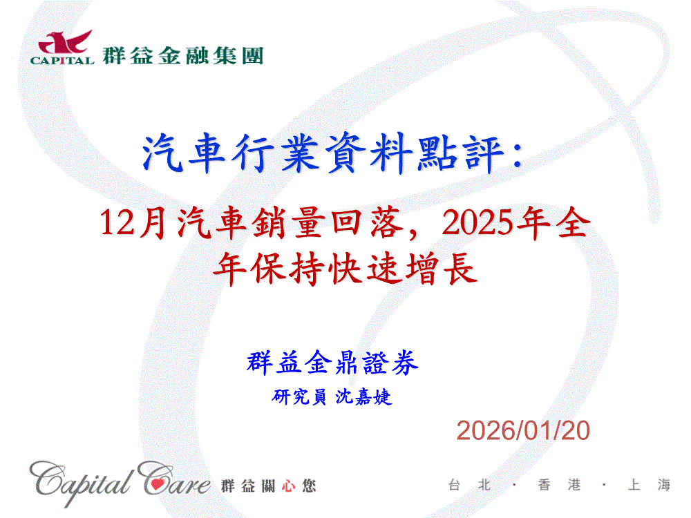 汽车行业:群益证券(香港)-汽車行業資料點評:12月汽車銷量回落,2025年全年保持快速增長-260120