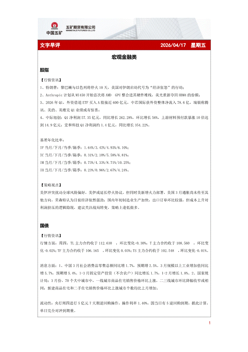 五矿期货-铜周报:海外情绪面偏乐观-260418
